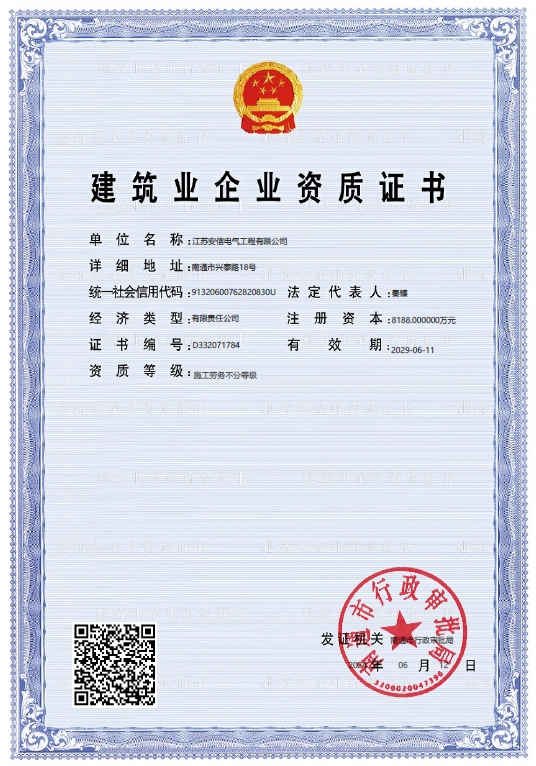 江蘇安信電氣工程有限公司,成立于2004年6月,注冊資金8188萬元,占地22000平方米,位于南通市興泰路18號,東接南通站、興東機場,西鄰南通西站、滬蘇通公鐵長江大橋,交通便捷。
